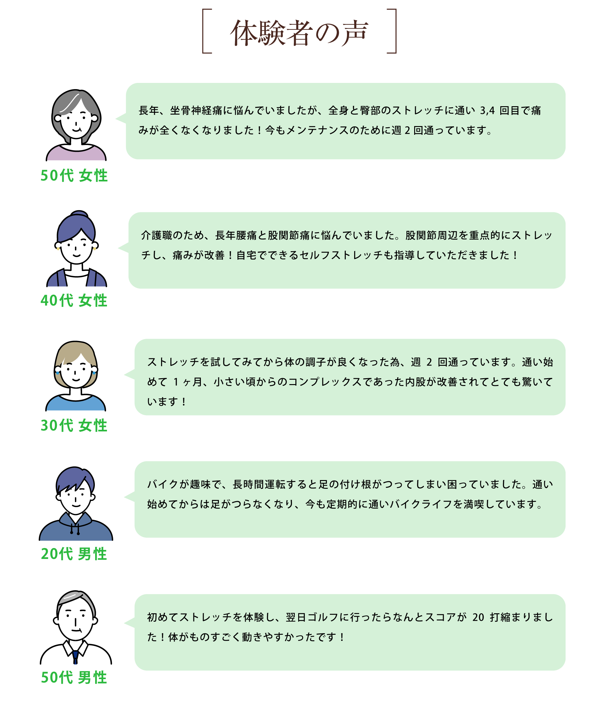 ハートストレッチは、肩・腰・横っ腹・股関節・お尻・太腿・膝など身体の様々な箇所の症状をのストレッチによって改善します。